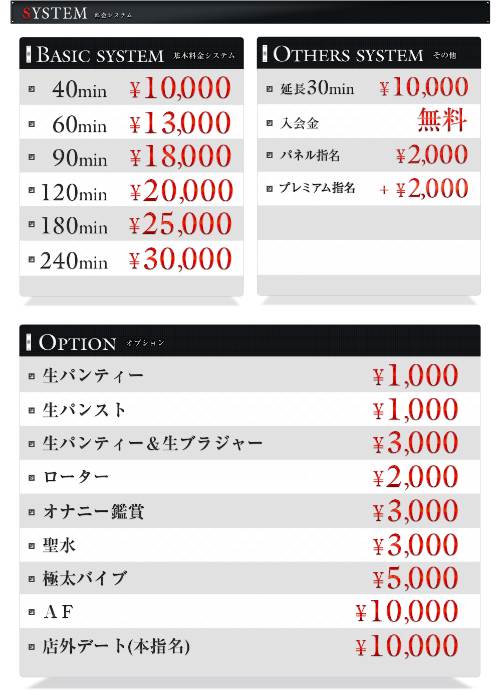 ■本番行為の強要、交渉、行為、又それに準ずる発言。サービス内容以外の強要。(罰金50万円以上)
